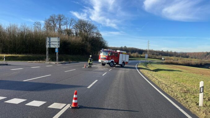 Gestern Mittag wurde die Abteilungswehr Asbach erneut zu einem Verkehrsunfall auf die B292 alarmiert. Im Kreuzungsbereich der Abzweigung nach Breitenbronn war es zu einem Verkehrsunfall mit drei Fahrzeugen gekommen, wobei eine Person gemeinsam von Feuerwehr und Rettungsdienst aus ihrem Wagen befreit werden musste. Vor Ort waren neben Rettungsdienst, OrgL und Polizei die Freiwilligen Feuerwehren aus Aglasterhausen, Neunkirchen und Schwarzach. Aufgabe der Abteilungswehr Asbach war die Verkehrsabsicherung aus Fahrtrichtung Obrigheim, da die Bundesstraße für die Dauer der Unfallaufnahme sowie der Räumungsarbeiten zwischen dem Abzweig in Richtung Asbach und dem Abzweig in Richtung Daudenzell voll gesperrt war.